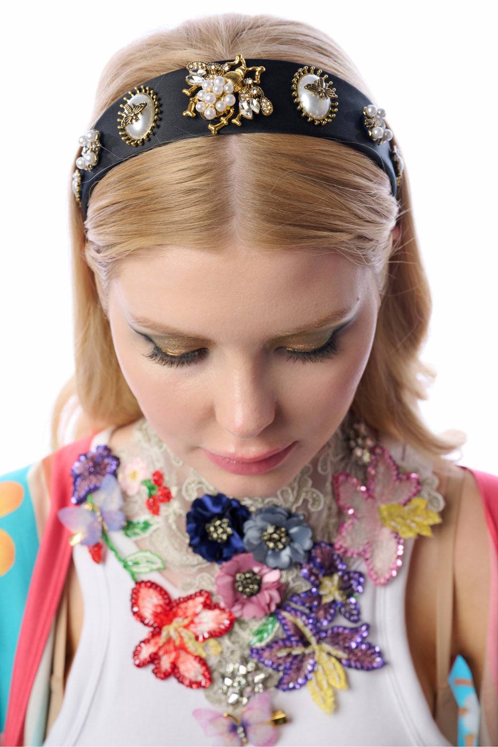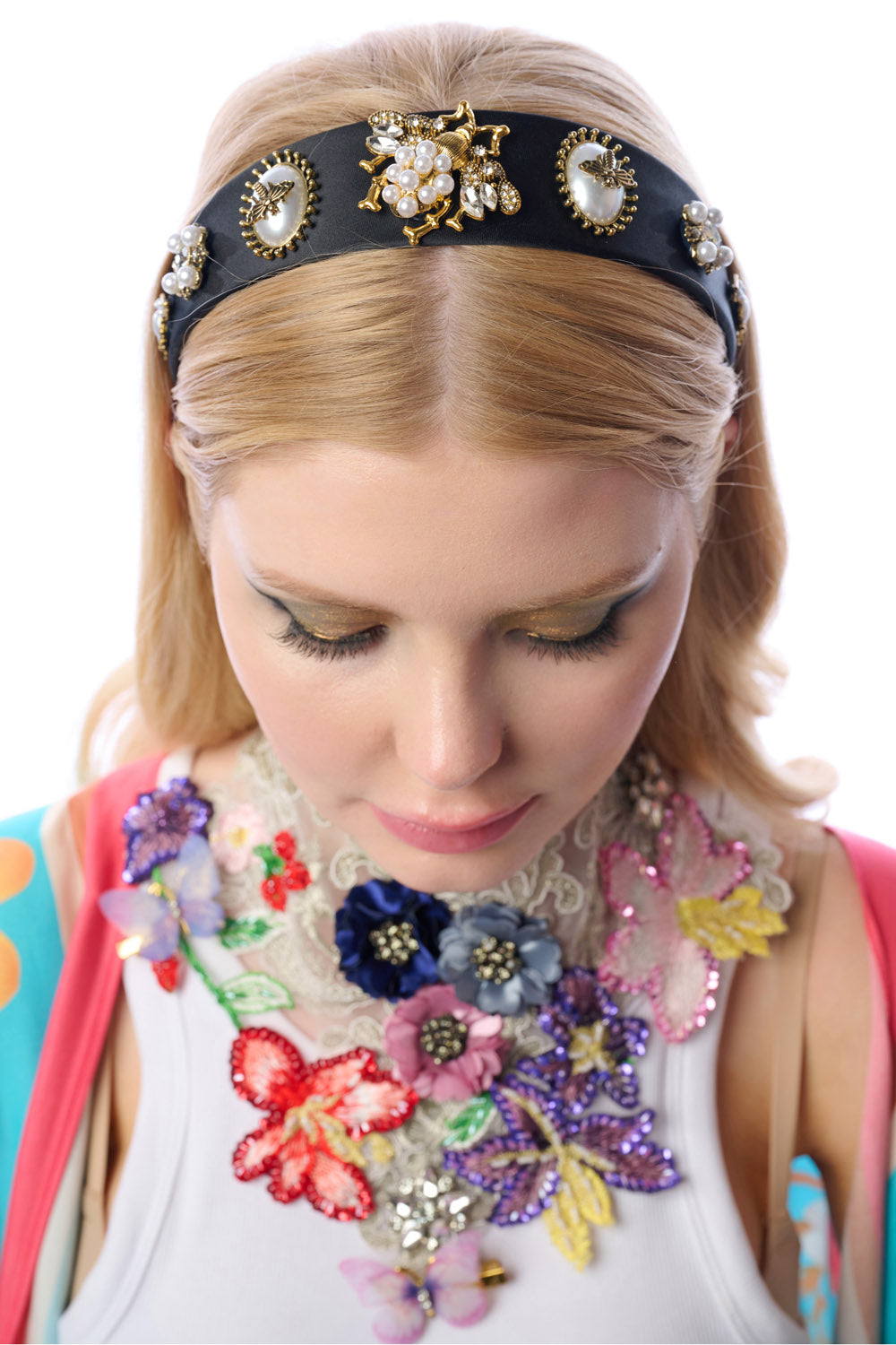 - Rhinestone pearl satin headband