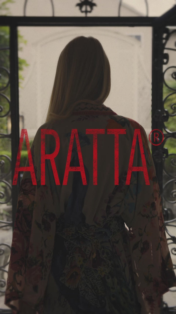 - Lined & belted peacock floral print kimono with burnout velvet sleeves, side slits